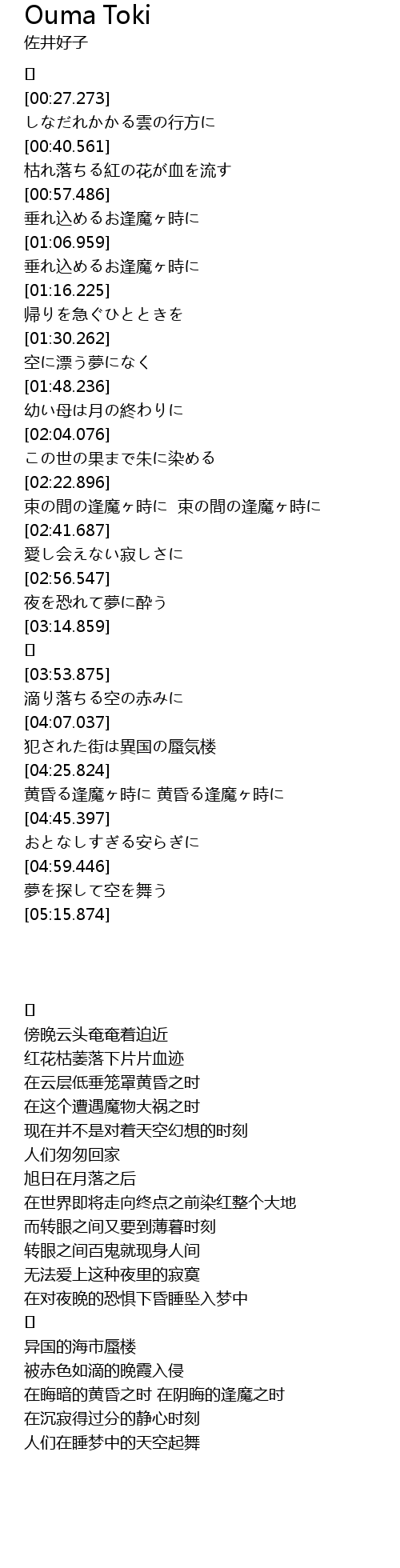 | [04:26.624] | 黄昏る逢魔ヶ時に 黄昏る逢魔ヶ時に |