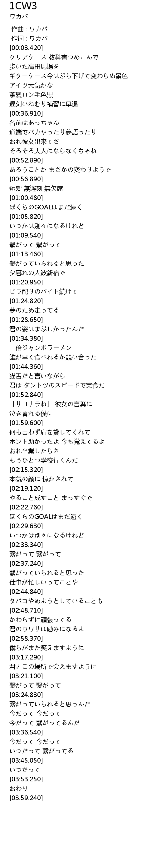 | [00:01.00] | 作词 : ワカバ |