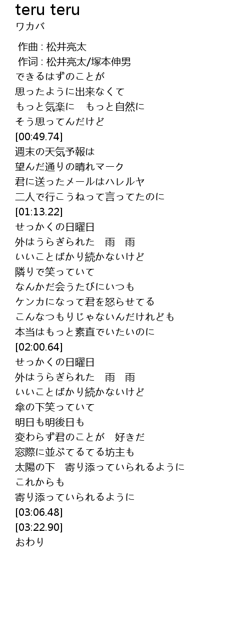 | [02:37.81] | 窓際に並ぶてるてる坊主も |