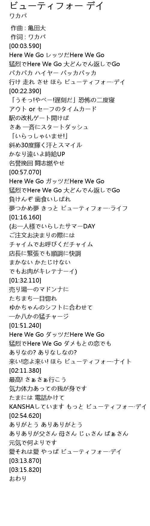 | [02:48.750] | KANSHAしています もっと ビューティフォー·デイ |