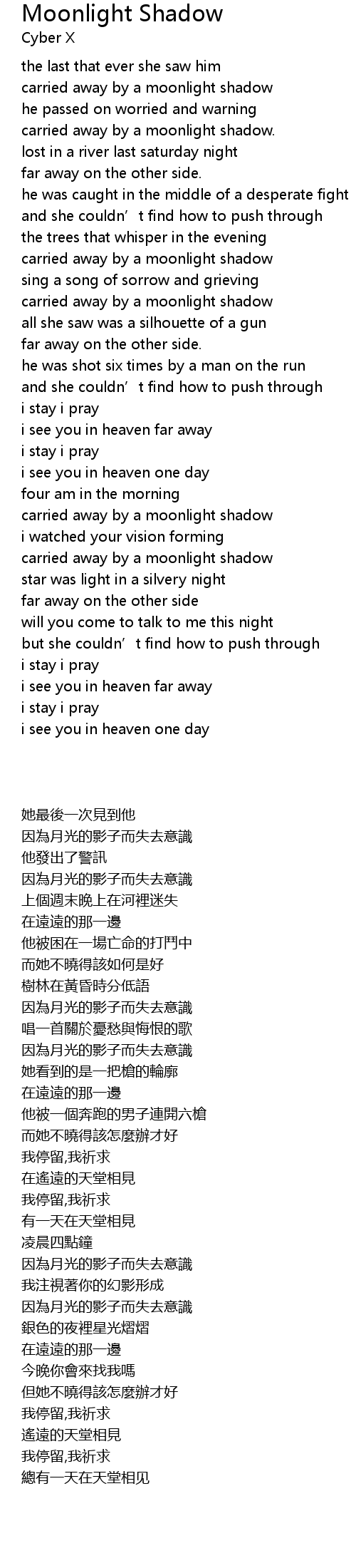 | [01:22.61] | carried away by a moonlight shadow |