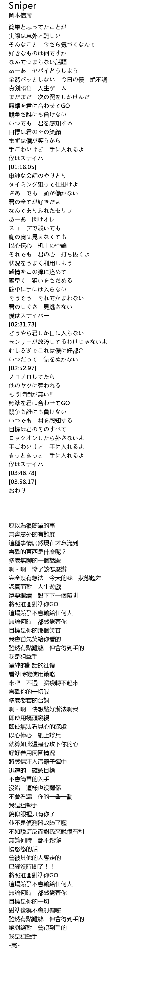 | [02:01.03] | それでも 君の心 打ち抜くよ |