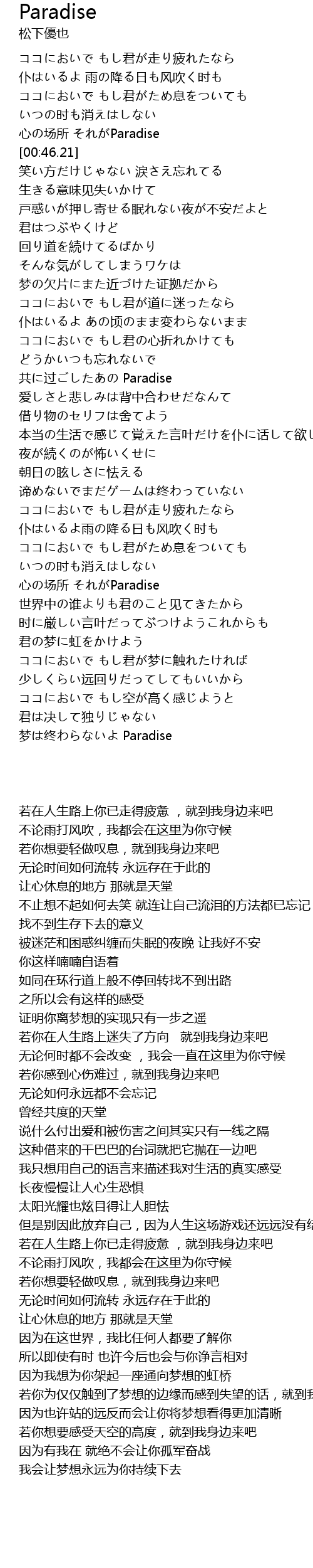 | [03:29.98] | 心の场所 それがParadise |