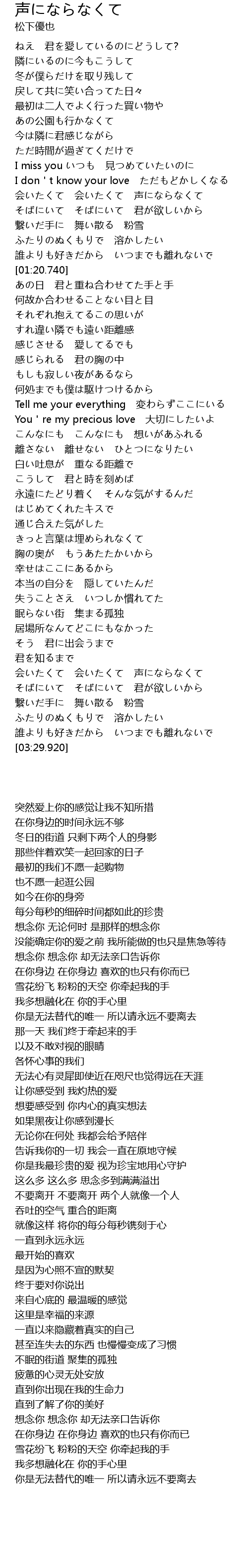 | [00:44.250] | I miss you いつも 見つめていたいのに |