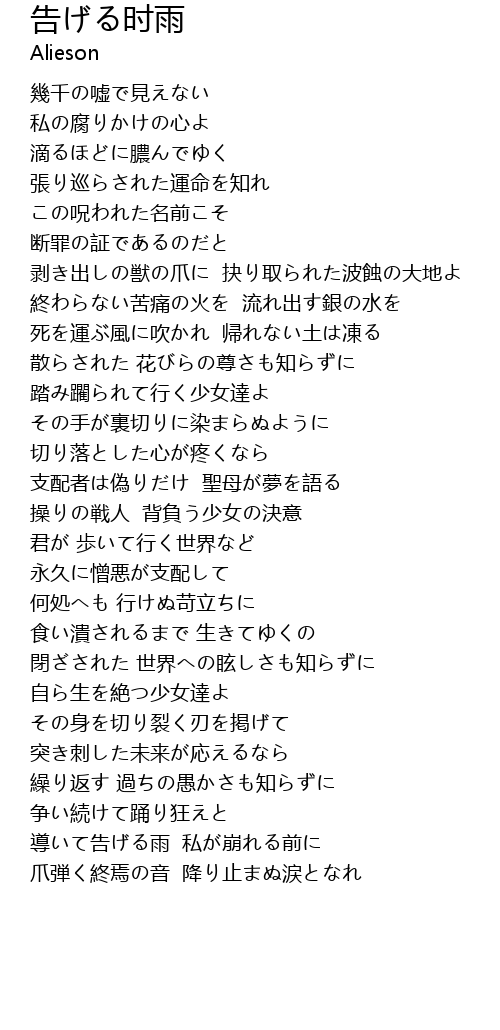 | [04:15.75] | 導いて告げる雨 私が崩れる前に |