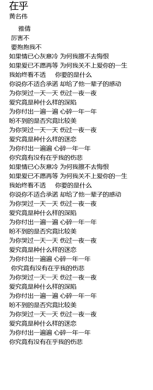 | [01:12.77] | 为你付出一遍一遍 心碎一年一年 |