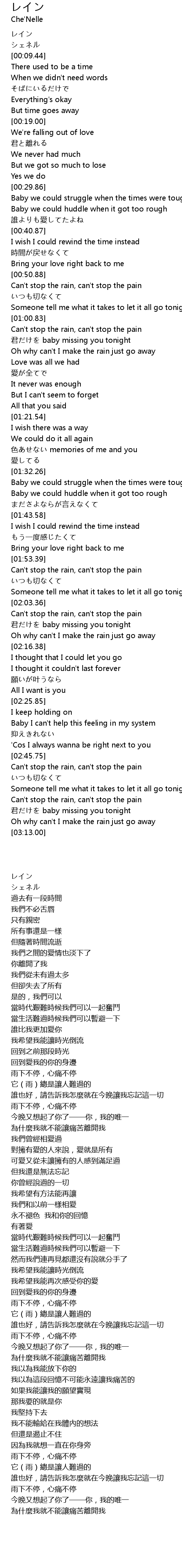 | [02:58.83] | Can't stop the rain, can't stop the pain |