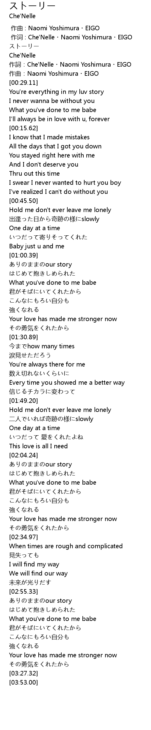 | [00:23.09] | 作詞:Che'Nelle・Naomi Yoshimura・EIGO |