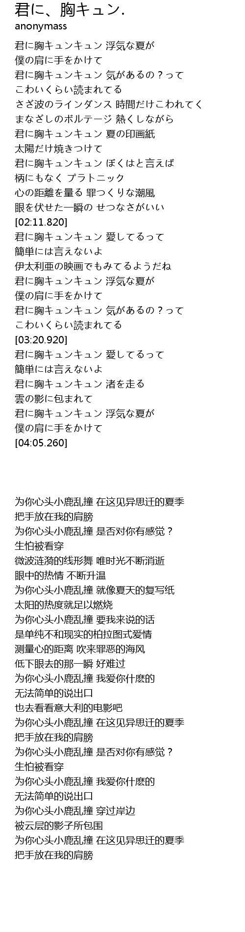 | [02:52.760] | 君に胸キュンキュン 浮気な夏が |