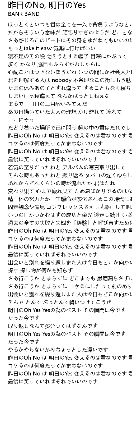 | 昨日のOh No は 明日のYes 変えるのは君なのです 君なのです | |
