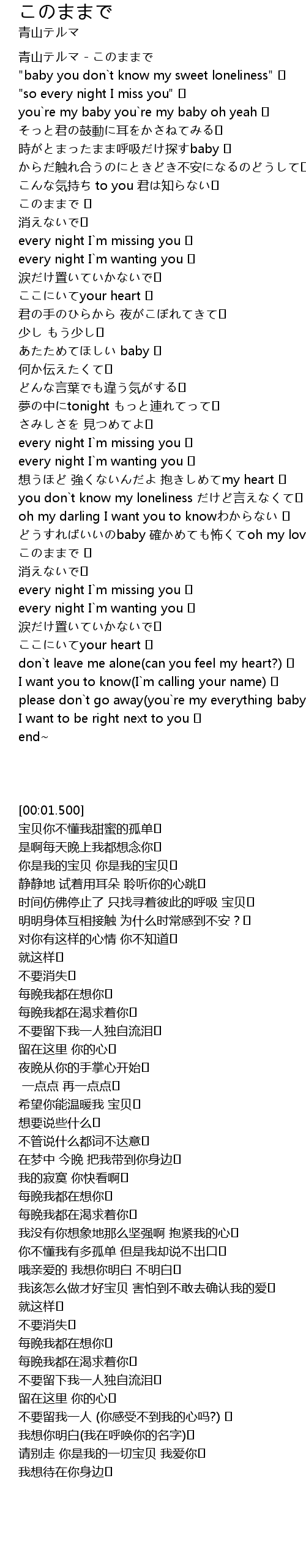 | [03:01.100] | oh my darling I want you to knowわからない ♥ |