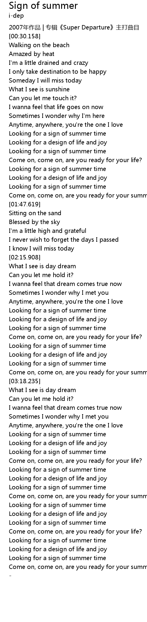 | [02:53.132] | Looking for a sign of summer time |