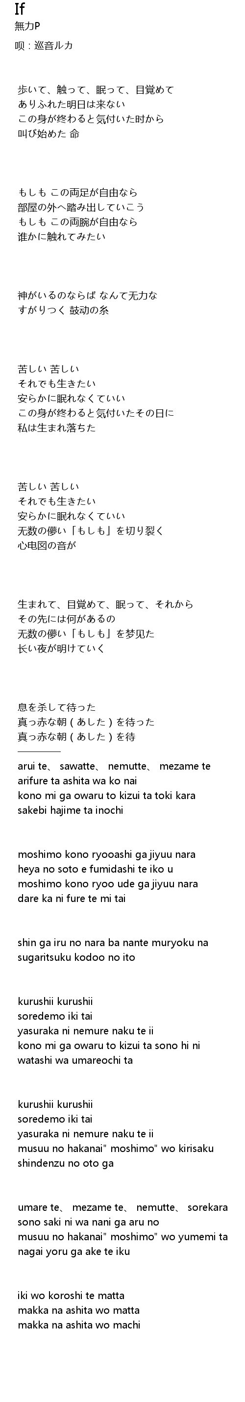 | musuu no hakanai" moshimo" wo yumemi ta | |