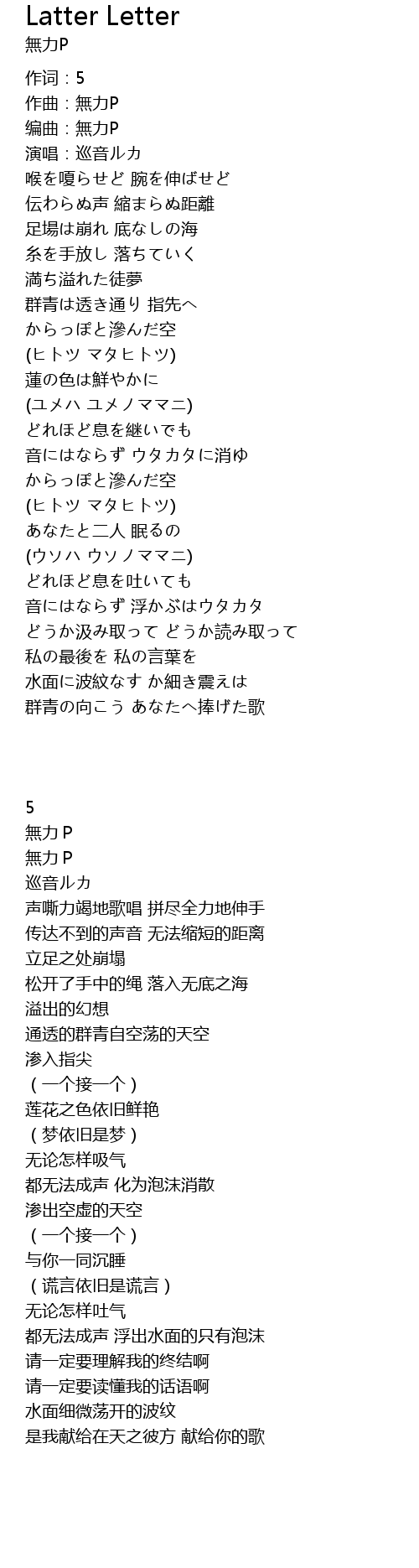 | [03:51.65] | 群青の向こう あなたへ捧げた歌 |