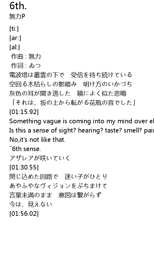 | [01:45.11] | 言葉未満のまま 意図は繋がらず |