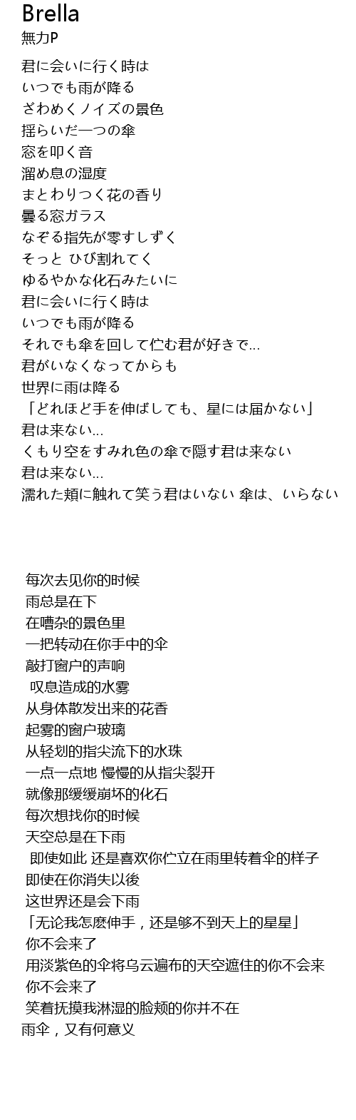 濡れた頬に触れて笑う君はいない 傘は、いらない |