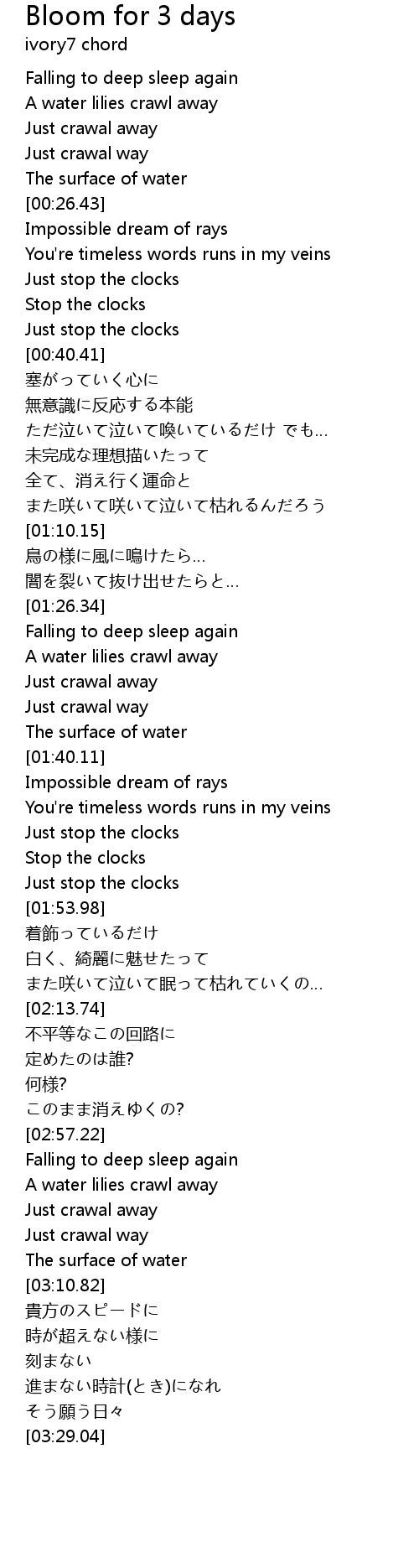 | [02:08.87] | また咲いて泣いて眠って枯れていくの… |