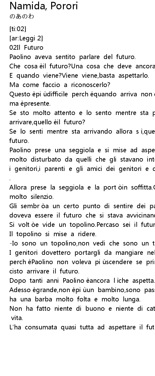 | [00:10.291] | Che cosa èil futuro?Una cosa che deve ancora venire. |