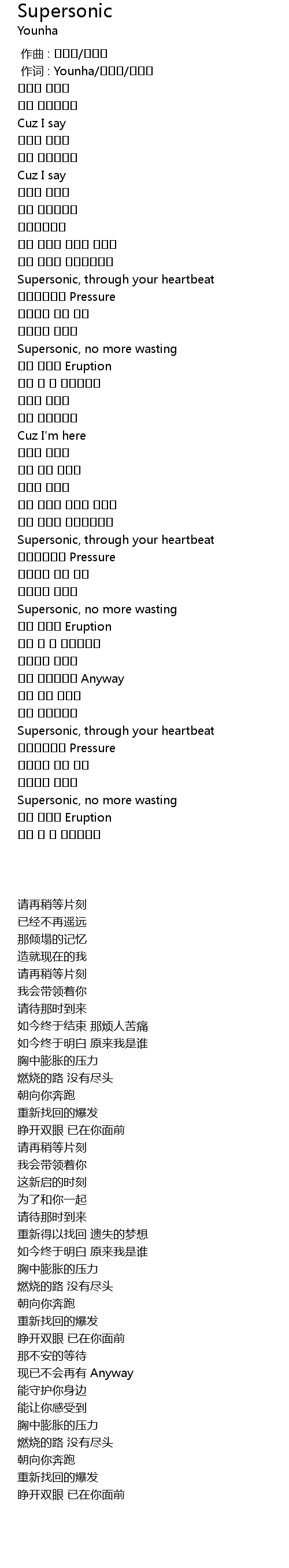 | [00:01.00] | 作词 : Younha/김병석/스코어 |