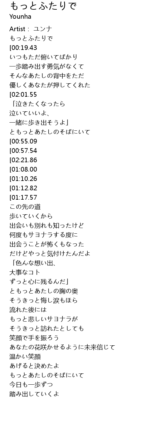 | [00:016.87] | もっとふたりで |