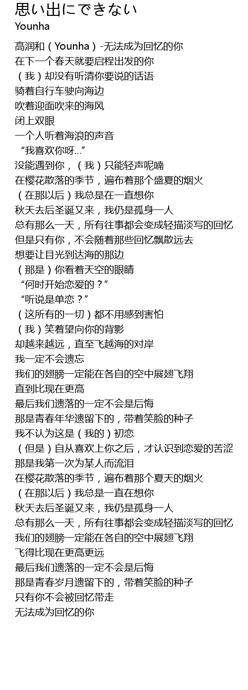 | [00:02.17] | gāo rùn hé Younha wú fǎ chéng wéi huí yì de nǐ |