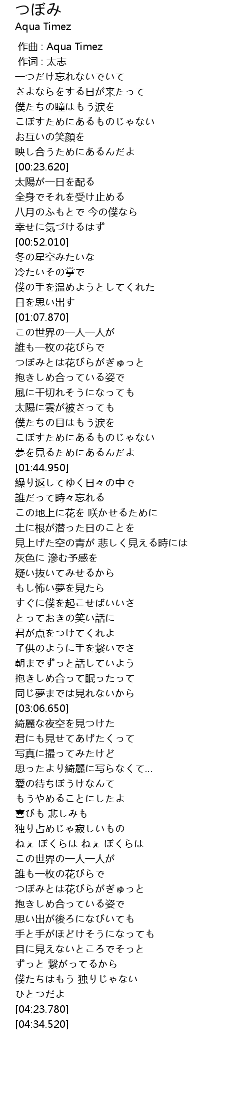 | [03:53.300] | つぼみとは花びらがぎゅっと |