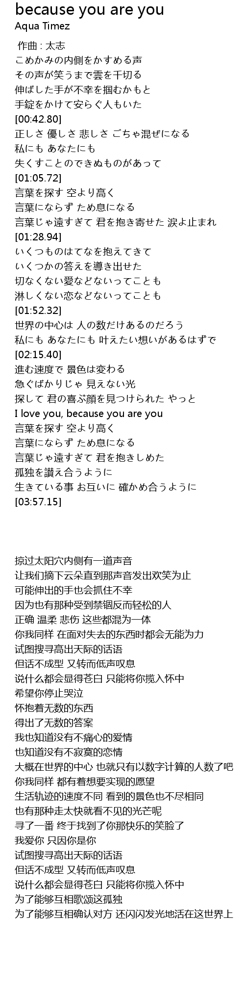 | [02:38.41] | I love you, because you are you |
