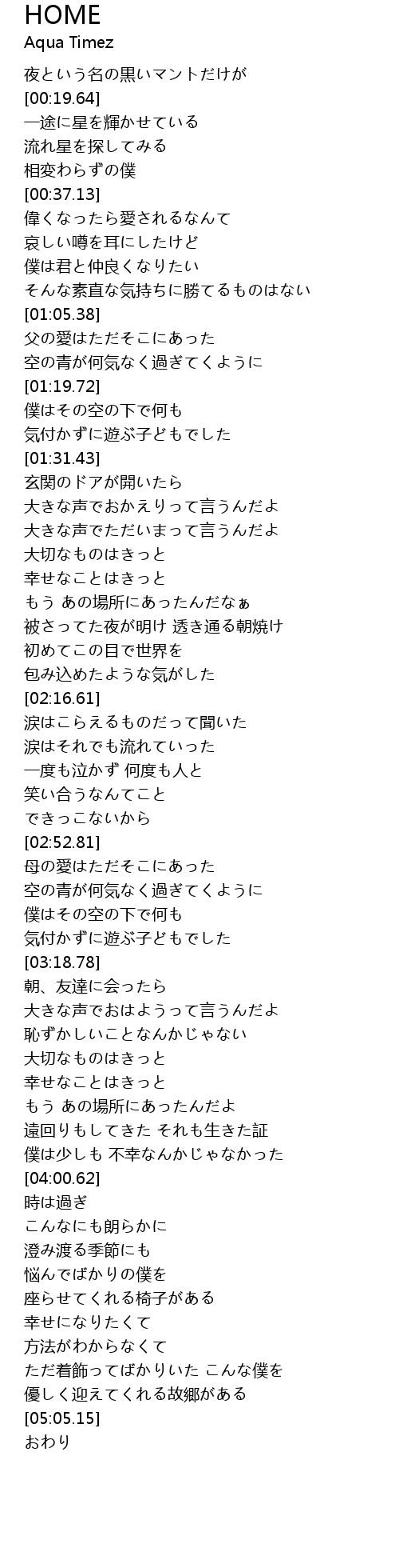 | [04:56.79] | 優しく迎えてくれる故郷がある |