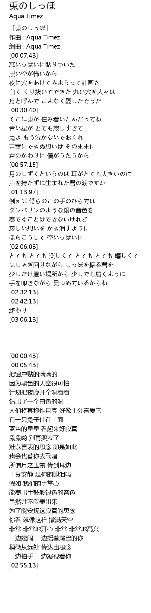 | [00:00.43] | 「兎のしっぽ」 |