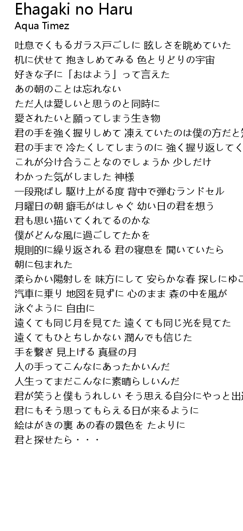 | 絵はがきの裏 あの春の景色を たよりに 君と探せたら・・・ |