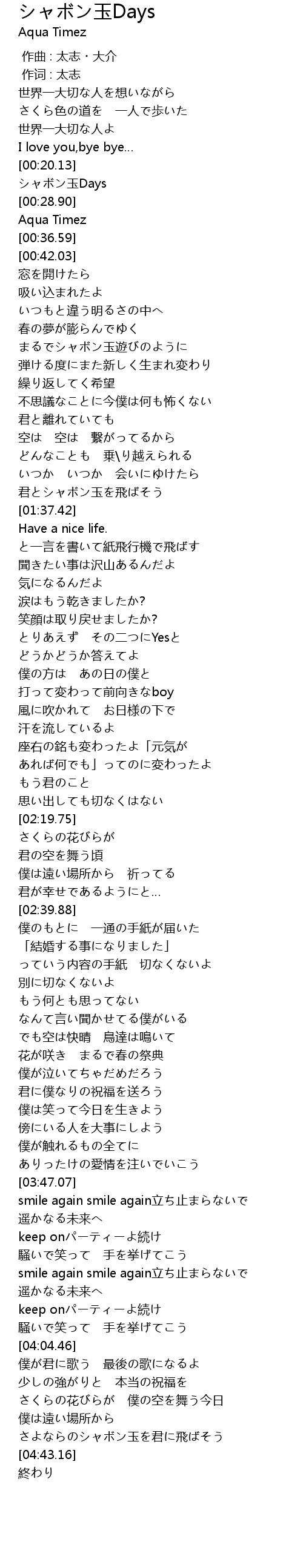 | [00:57.59] | まるでシャボン玉遊びのように |