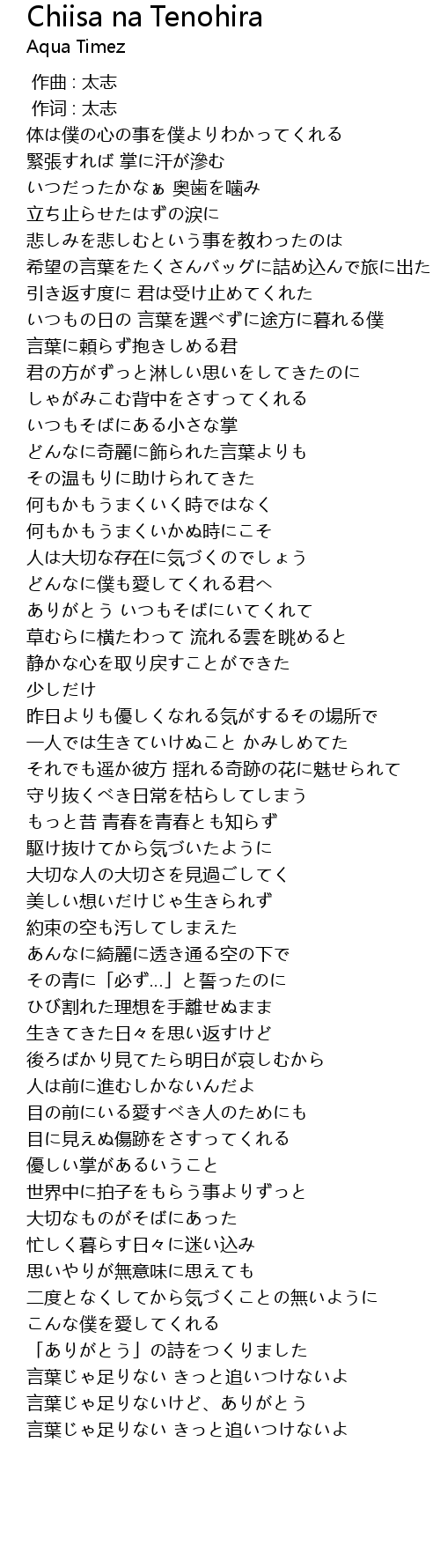 | [01:43.810] | ありがとう いつもそばにいてくれて |