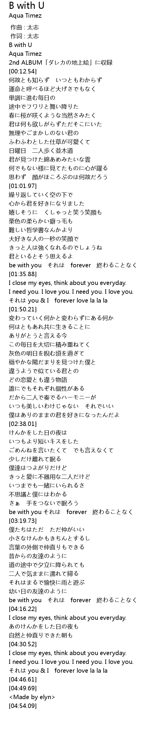 | [03:00.00] | いつまでも一緒にいられるさ |
