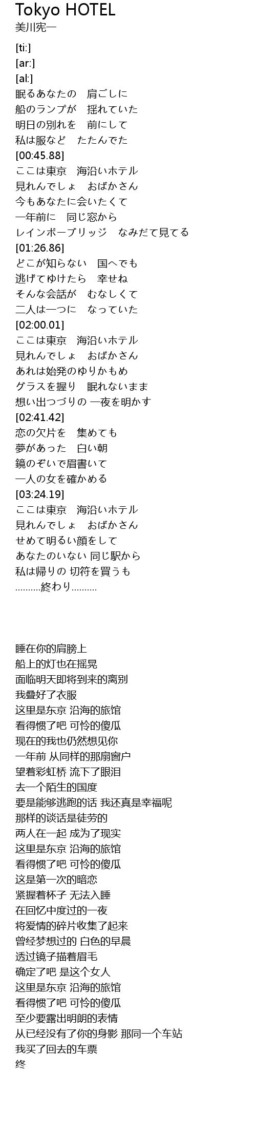 | [02:03.71] | ここは東京 海沿いホテル |