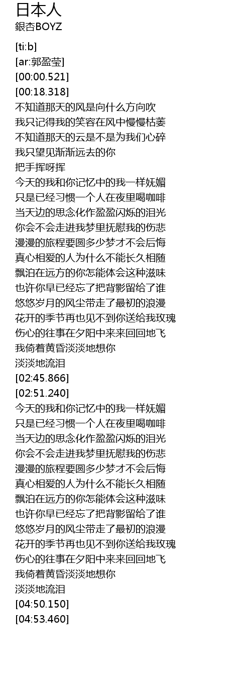 | [00:41.639] | bu zhi dao na tian de feng shi xiang shen me fang xiang chui |