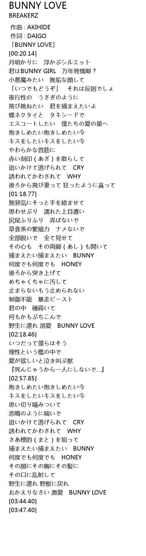 | [03:35.94] | おかえりなさい 激愛 BUNNY LOVE |
