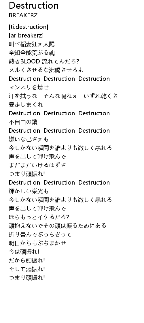 | [01:12.419] | Destruction Destruction Destruction |