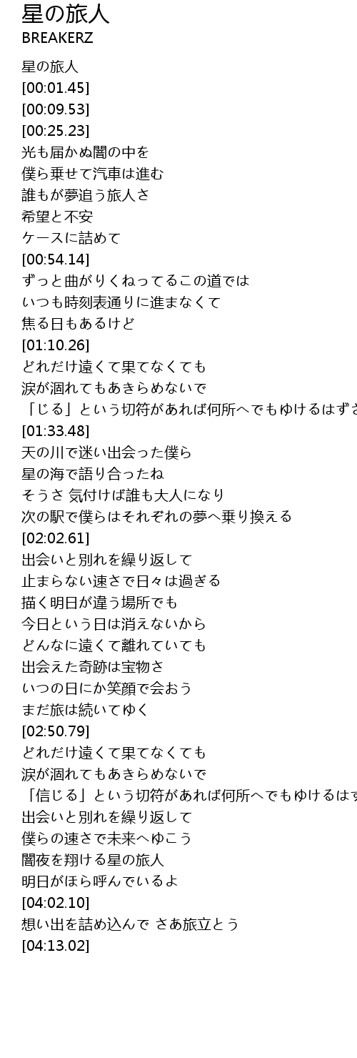| [03:51.04] | 闇夜を翔ける星の旅人 |