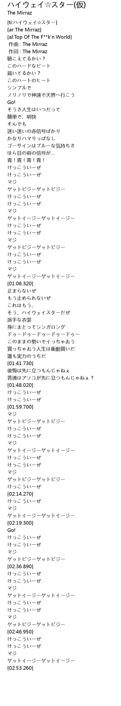 | [01:58.000] | けっこういーぜ |