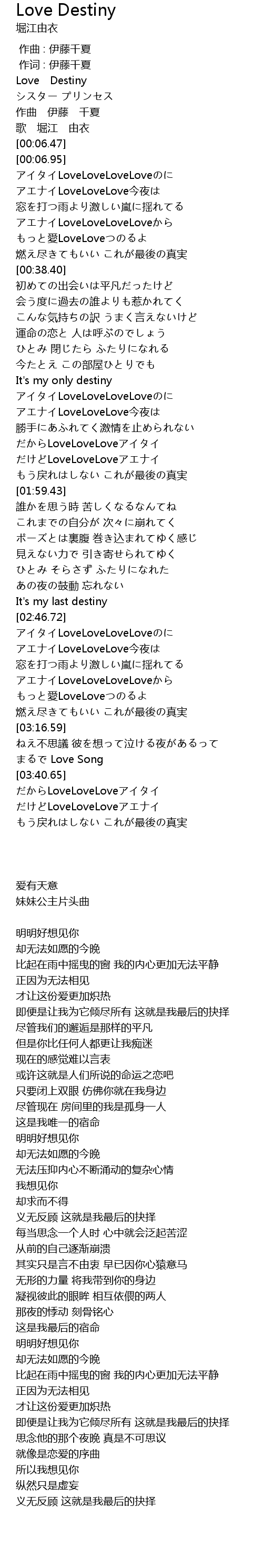 | [01:02.69] | 運命の恋と 人は呼ぶのでしょう |