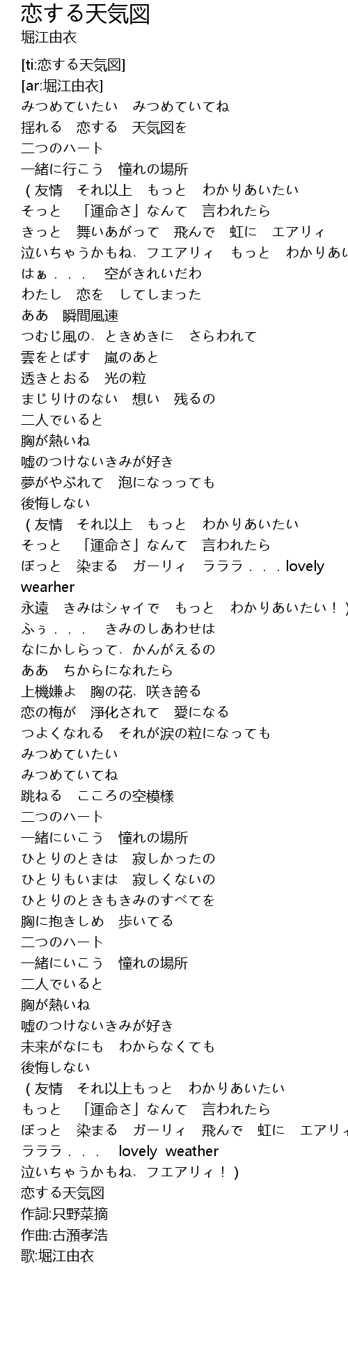 | [00:05.676] | 揺れる 恋する 天気図を |