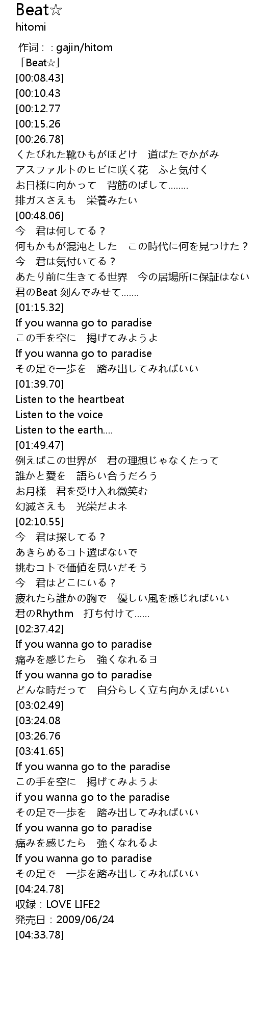 | [02:31.01] | 君のRhythm 打ち付けて...... |
