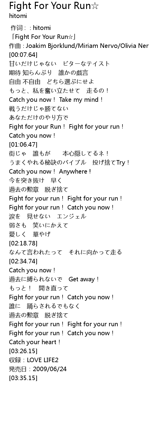 | [00:56.84] | Fight for your Run! Fight for your run! |