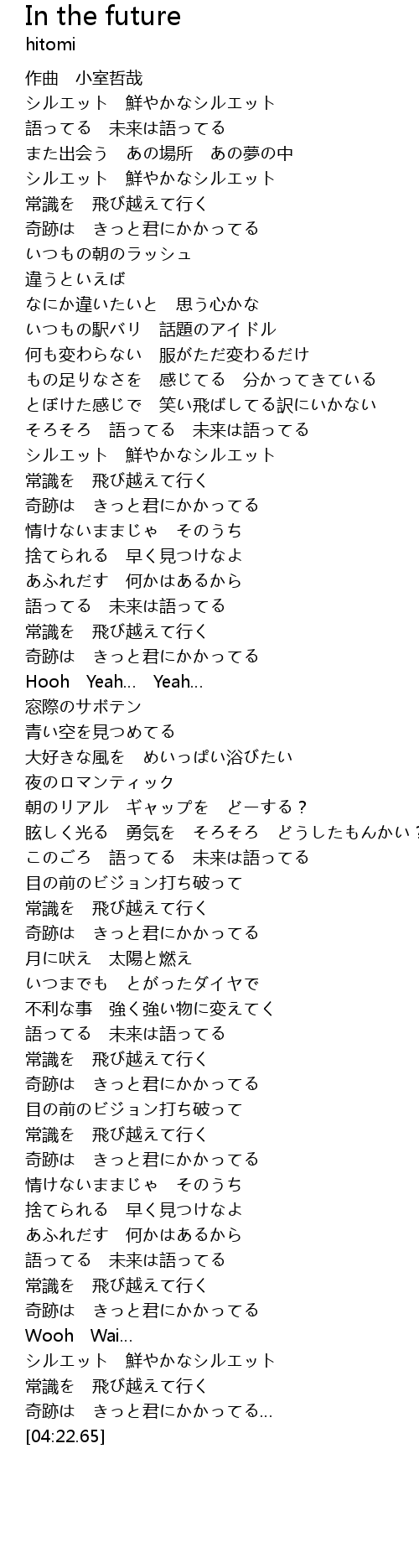| [01:17.85] | そろそろ 語ってる 未来は語ってる |