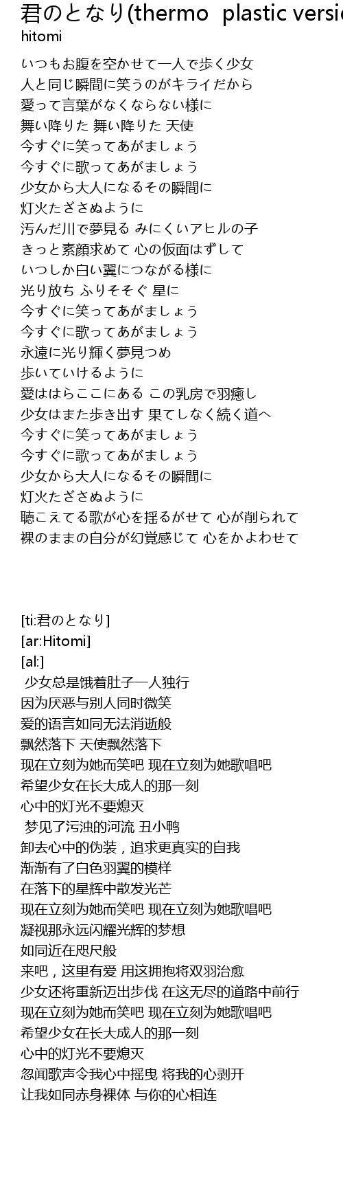 | [02:41.57] | 少女はまた歩き出す 果てしなく続く道へ |