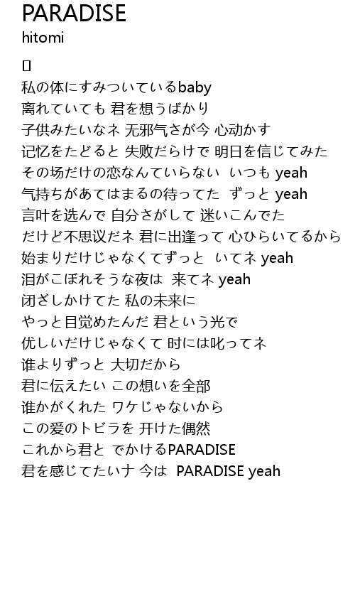 | 气持ちがあてはまるの待ってた ずっと yeah | |