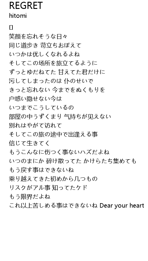 | これ以上苦しめる事はできないね Dear your heart |