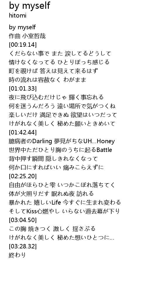 | [00:29.23] | 情けなくなってる ひとりぼっち感じる |