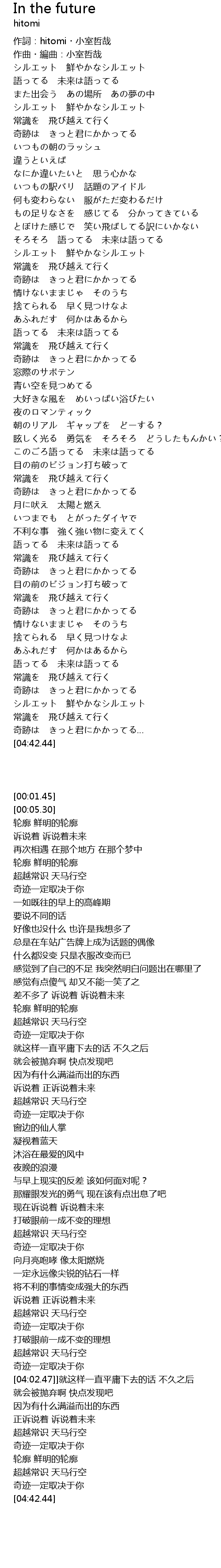 | [02:39.99] | このごろ語ってる 未来は語ってる |