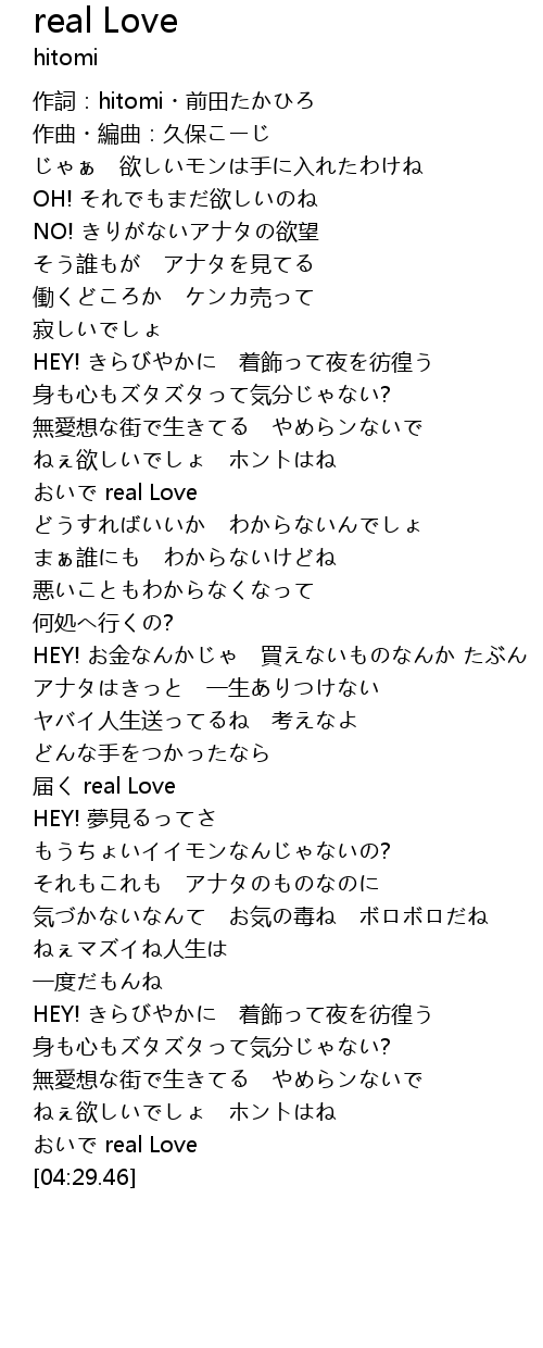 | [04:16.96] | ねぇ欲しいでしょ ホントはね |